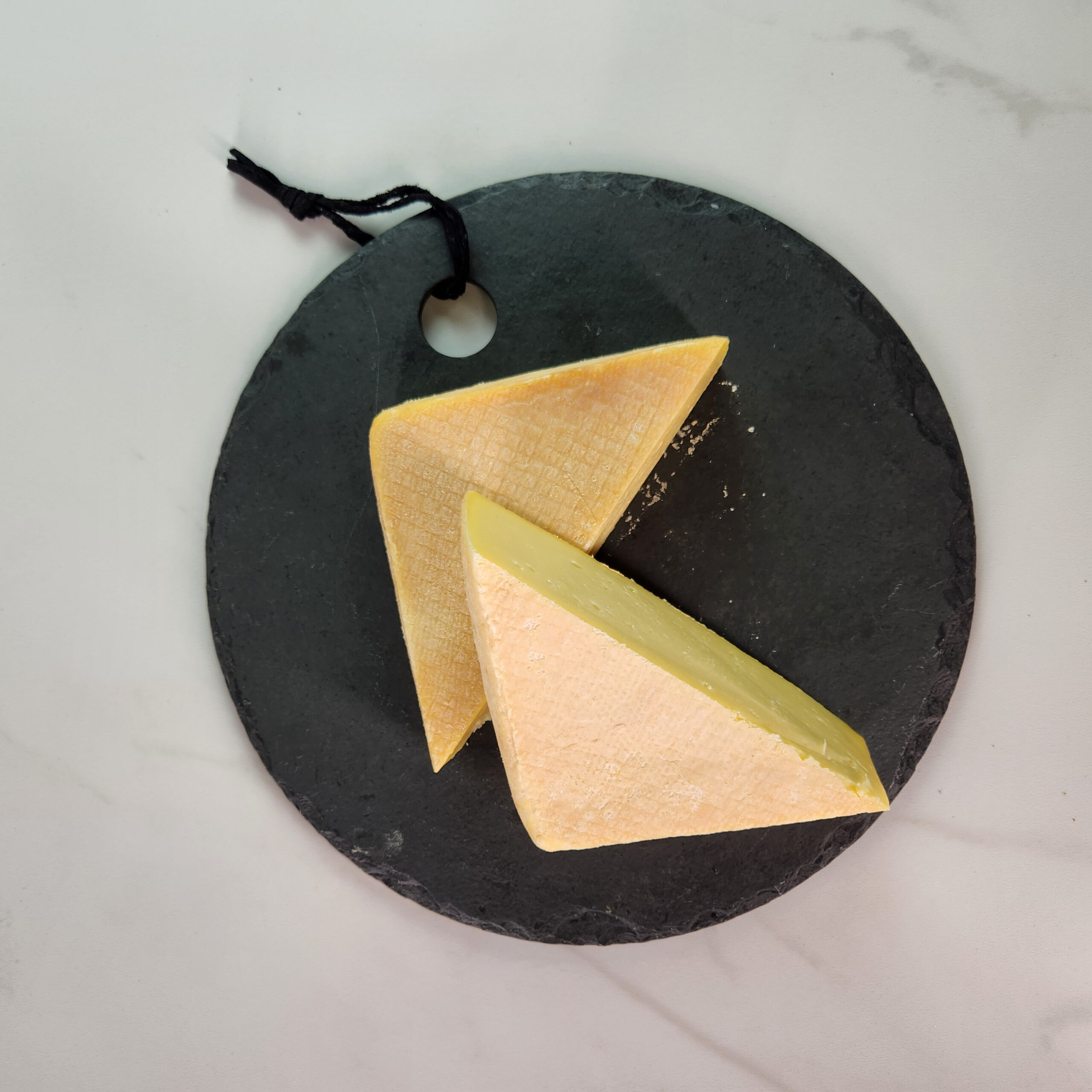 Inspirado no Taleggio italiano, casca alaranjada, massa semi-mole, cor amarelada, sabor encorpado e característicos dos queijos de “casca lavada”.