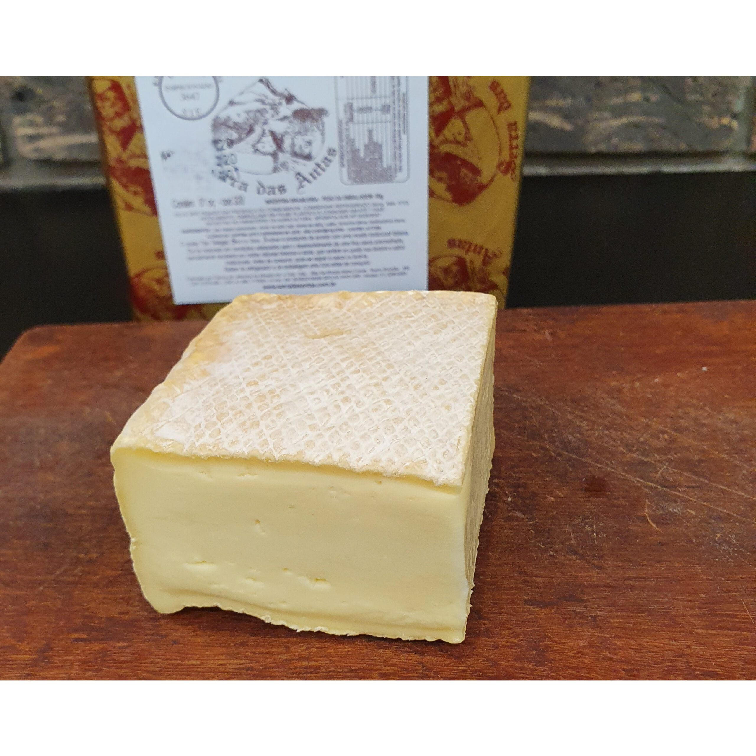 Inspirado no Taleggio italiano, casca alaranjada, massa semi-mole, cor amarelada, sabor encorpado e característicos dos queijos de “casca lavada”.